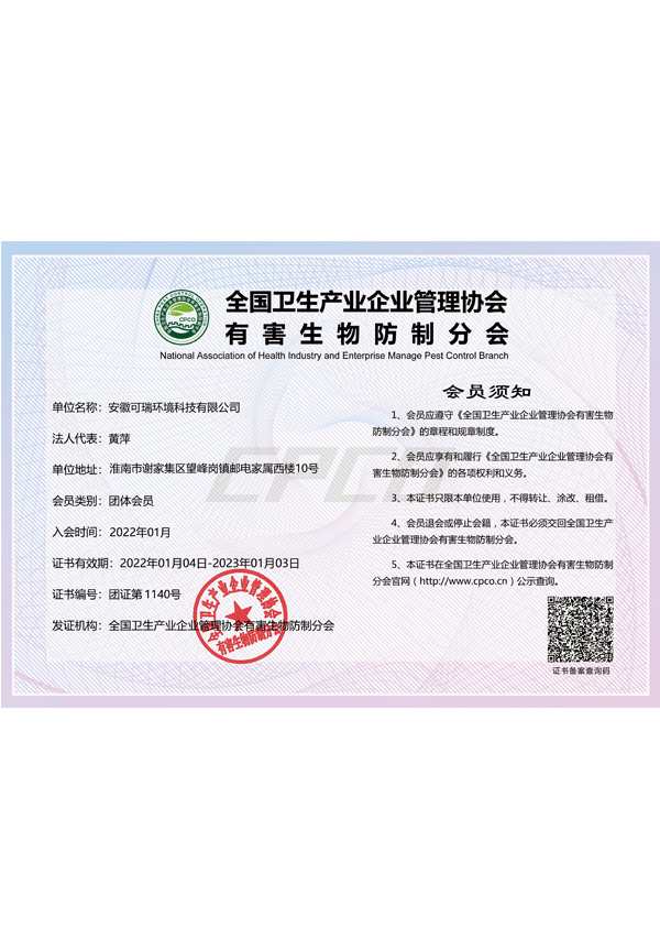 凱瑞蟲控擁有質(zhì)量管理體系認證、環(huán)境管理體系認證、國家有害生物資質(zhì)等各項證書
